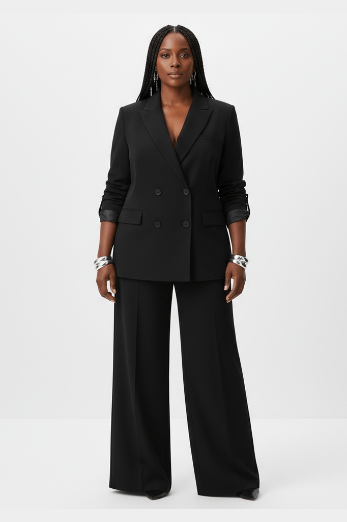 A commanding two-piece set built for the modern professional. The structured blazer features clean lapels and a tailored silhouette, while the matching high-waist trousers offer a long, elegant line. Crafted in premium suiting fabric for all-day confidence. Available in multiple colourways. UK sizing.
